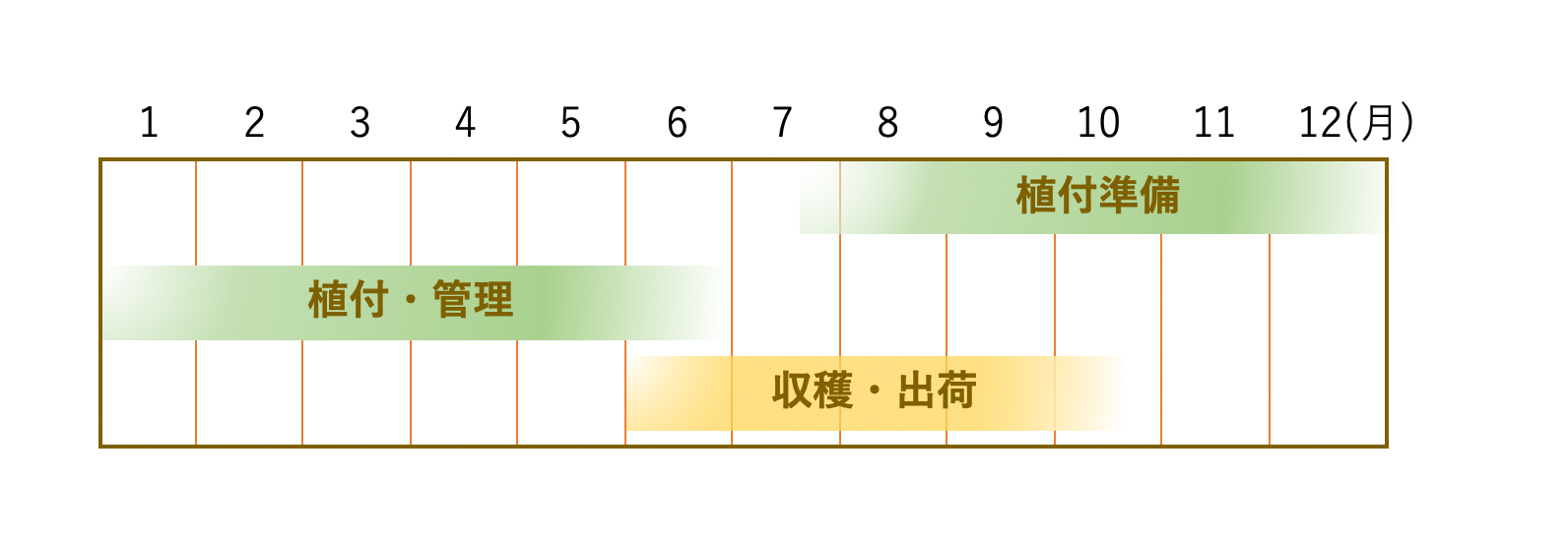 ゴボウの種まきは12月中旬以降におこない初夏の6月頃から出荷します。薩摩半島も大隅半島も大規模ほ場で栽培しています。