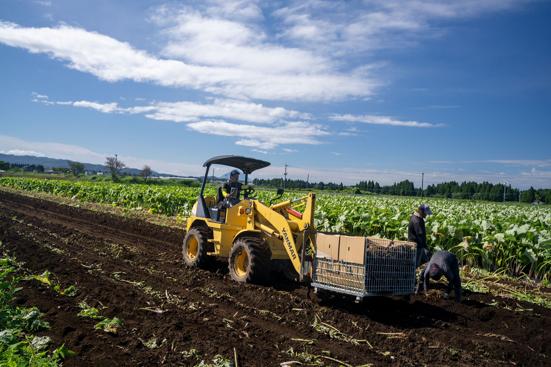 ゴボウの種まきは12月中旬以降におこない初夏の6月頃から出荷します。薩摩半島も大隅半島も大規模ほ場で栽培しています。